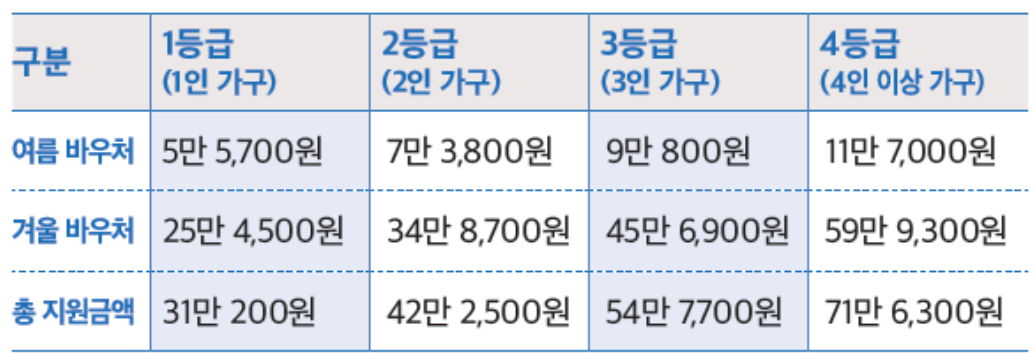 3. 지원 내용 : 전기, 도시가스, 지역난방, 연탄, 등유, LPG 구입이 가능한 전자바우처 지원