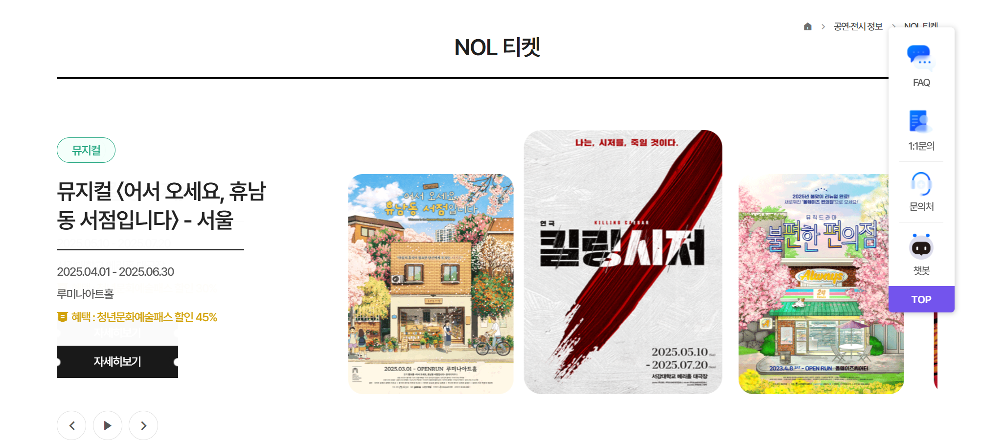 현장예매는 불가능하면 온라인에서만 가능합니다.