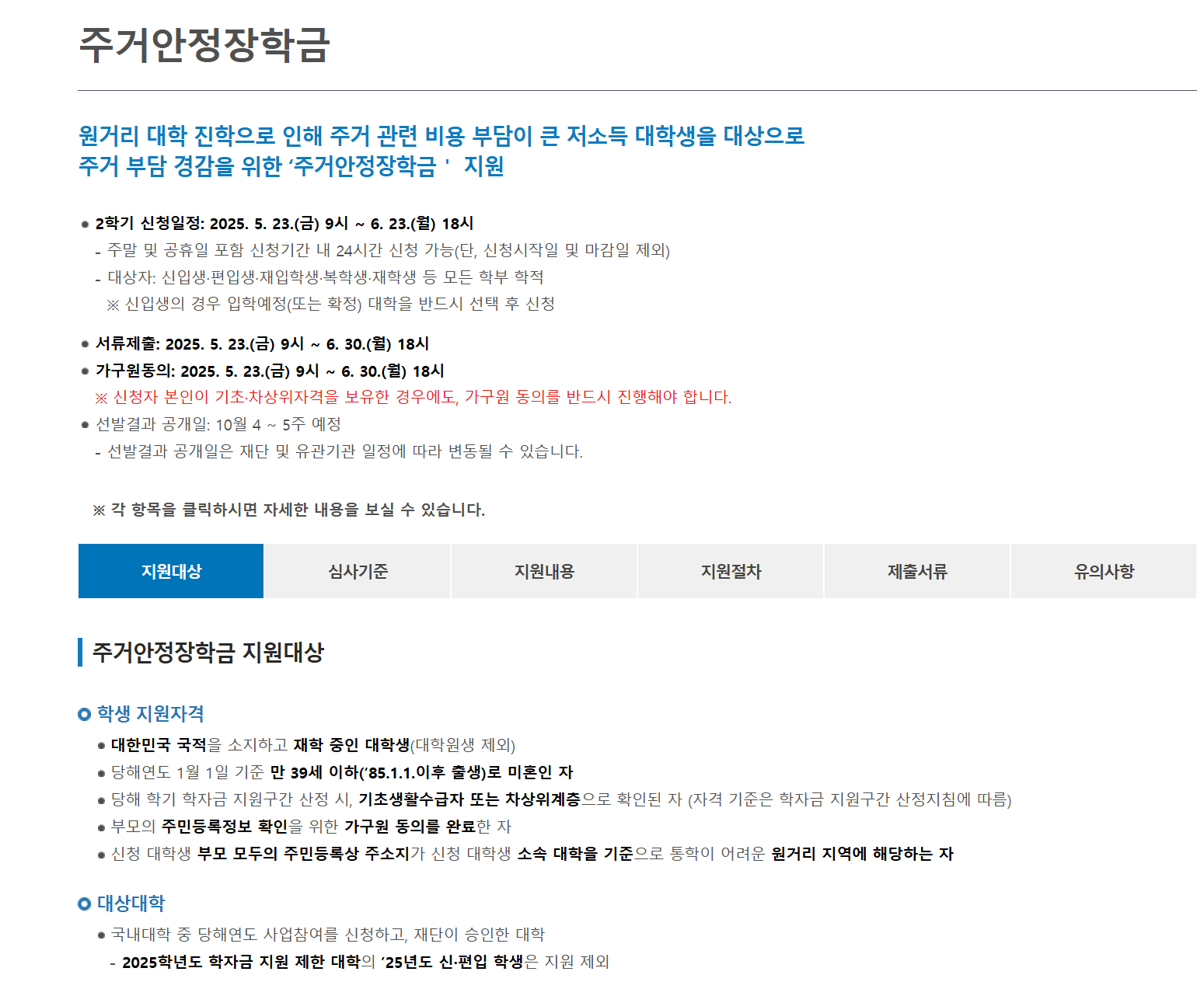 주거안정장학금 지원 대상