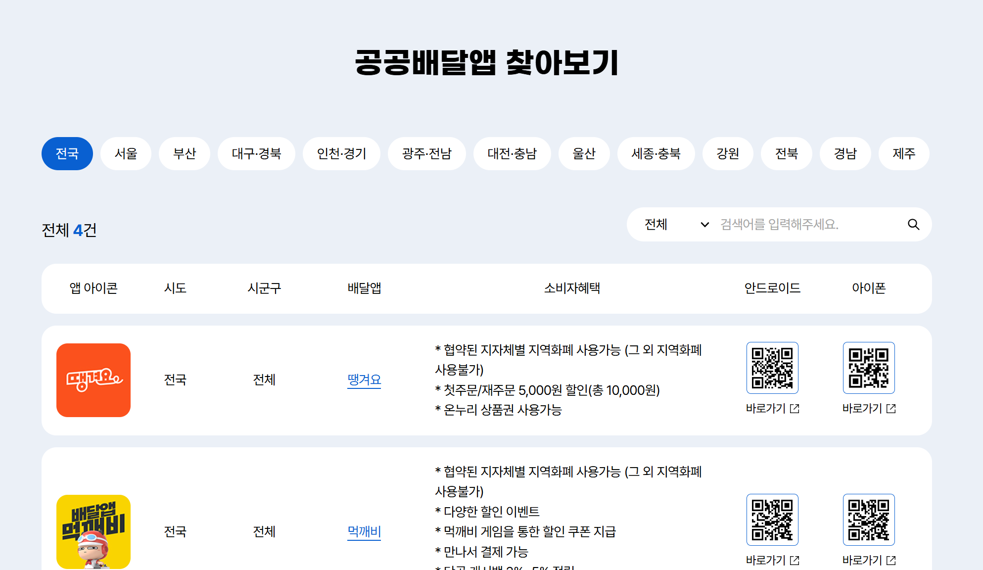 소비자는 자신의 거주 지역에서 어떤 공공배달앱을 사용할 수 있는지 ‘공공배달 통합포털'에서, 해당 앱을 통해 이벤트 참여 여부나 가맹 업소 등 자세한 내용을 확인할 수 있습니다.
