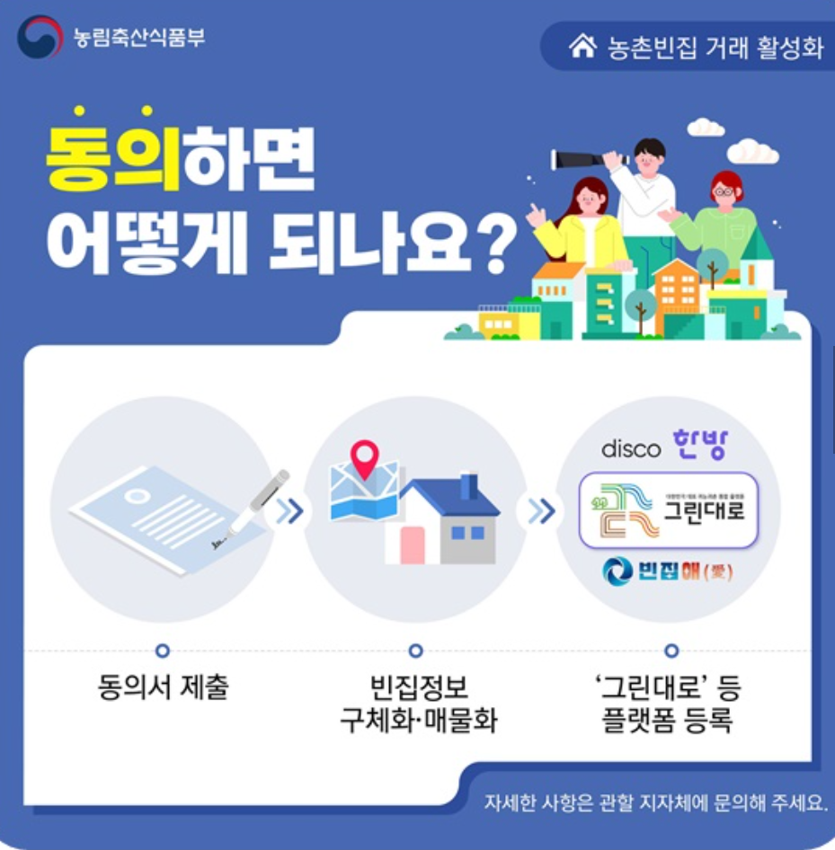 과거에는 농촌 빈집 정보를 찾기 위해 발품을 팔아야 했지만, 이제는 네이버부동산과 같은 민간 플랫폼에서도 손쉽게 확인할 수 있게 됩니다. 플랫폼 연계를 통해 정보의 접근성과 투명성을 높이고 있습니다. 또한 ‘그린대로’와 같은 귀농귀촌 전용 센터에도 매물을 등록해 귀촌을 꿈꾸는 도시민이 보다 쉽게 정착지를 찾을 수 있도록 돕고 있습니다.