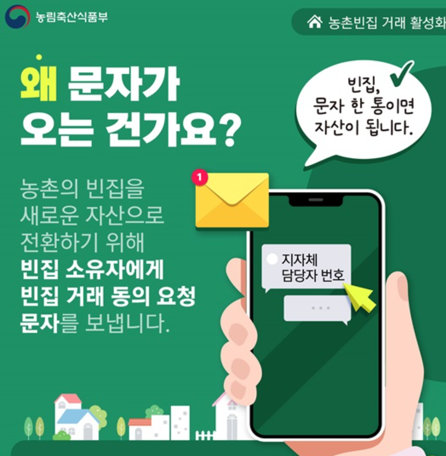 귀농·귀촌에 대한 관심이 높아지면서 많은 사람들이 조용한 시골에서의 삶을 꿈꾸고 있습니다. 하지만 막상 내려가 살 집을 찾는 데 어려움을 겪는 경우가 많습니다. 이런 상황에서 주목받는 것이 바로 ‘농촌빈집은행’ 사업입니다. 사용되지 않고 방치된 농촌의 빈집을 주거, 창업, 귀농 공간 등으로 전환해 실수요자에게 연결해주는 이 사업은, 농촌 활성화와 도시민의 정착을 동시에 도모하는 정책으로 주목받고 있습니다. 빈집을 찾는 것도 어려울 뿐더러 소유자가 누군지도 알 수 없는 경우가 많아 여러 어려움이 있었습니다. 아래 정보를 활용해 앞으로 빈집 찾는 것이 한층 더 수월 할 것으로 보입니다.